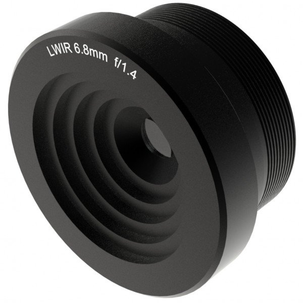 This passively athermalized wide-angle infrared lens fits the latest 17 µm qVGA as well as 25 µm qqVGA uncooled detectors.